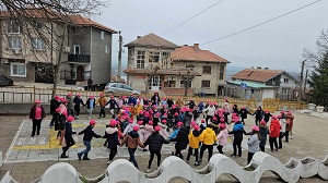 Учениците от начален етап на образование в СУ „Йордан Йовков“ отбелязаха Световния ден на розовата фланелка с българско право хоро.