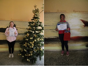 Магдалена Вескова Димитрова от 10.а клас, представител на ученическия съвет на училището спечели 2. място в Националния конкурс организиран от Общински център за извънучилищни дейности – „Никулден у дома“ в категория рисунка, трета възрастова група, Мелек Раданова от 8.б клас получи Специална награда!