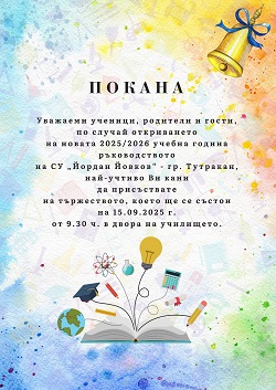 по случай откриването на новата учебна 2025/2026 година