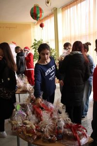 Ученици, учители и родители обединиха усилия и сърца, за да създадат истинска празнична магия – маси, отрупани с домашно приготвени сладки и солени изкушения, коледни лакомства и много настроение.